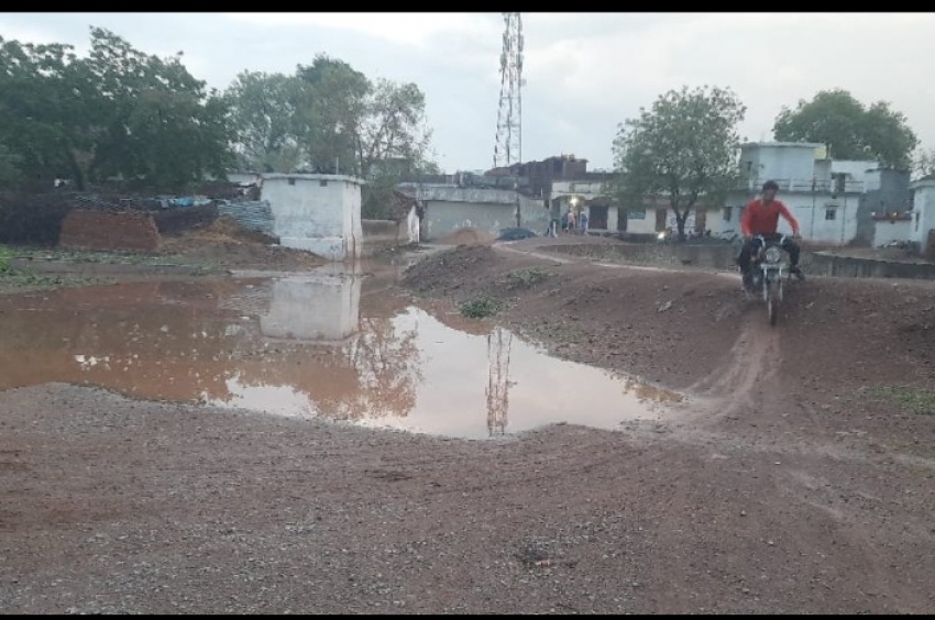 नवागढ़। शौर्यपथ । शहर में शनिवार की शाम हुई बेमौसम तेज बारिश ने आम जन जीवन अस्त-व्यस्त कर दिया है। तेज बारिश की वजह से क्षेत्र की कई सड़कों पर पानी भर गया है, जिससे राहगीरों को काफी परेशानी का सामना करना पड़ रहा है। इस बारिश से नवागढ़ नगर पंचायत के पानी निकासी व्यवस्था की भी पोल खुली है। सड़कें बारिश के पानी से तालाब बन चुकी हैं। बच्चों से लेकर बुजुर्गों को तालाब बनी सड़कों से होकर गुजरना पड़ रहा है। यह समस्या नवागढ़ नगर की है। मोटरसाइकिल और साइकिल वालों सहित पैदल चल रहे लोगों को मुश्किलों का सामना करना पड़ता है।