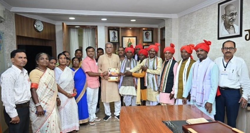 RAIPUR / SHOURYAPATH / Bastar Dussehra Committee representatives, led by Bastar MP Shri Deepak Baij, met Chief Minister Shri Bhupesh Baghel at his residence office on Saturday. They invite the Chief Minister to participate in the world-famous Bastar Dussehra festival in 2023. The Chief Minister expressed his gratitude to the delegation for inviting him to Bastar Dussehra and wished them success in organising the event.
