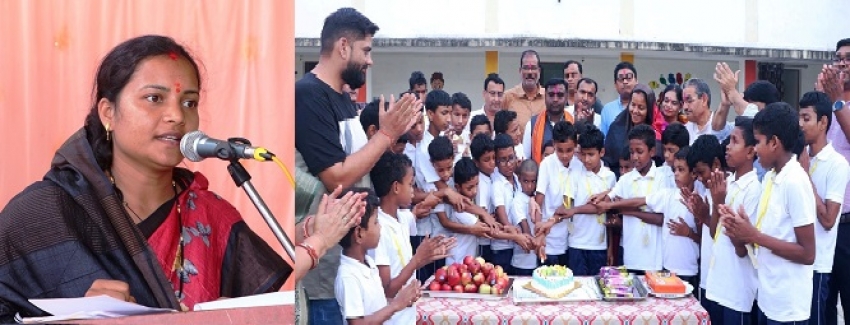 प्रदेश की समाज कल्याण एवं महिला एवं बाल विकास मंत्री श्रीमती लक्ष्मी राजवाड़े और कांकेर विधायक श्री आशाराम नेताम आज शाम को कांकेर जिला के प्रवास के दौरान ग्राम कोदाभाट स्थित शासकीय श्रवण बाधितार्थ आवासीय विद्यालय पहुंचे, जहां पर उन्होंने मूक-बधिर बच्चों से आत्मीय भेंट की। इस दौरान बच्चों ने गीत सुनाकर उनका स्वागत किया, जिससे वे काफी प्रसंन्न हुईं साथ ही बच्चों से विद्यालय में मिलने वाले भोजन, यूनिफॉर्म आदि के बारे में पूछा। तत्पश्चात उन्होंने देश के प्रधानमंत्री श्री नरेन्द्र मोदी के जन्मदिन के अवसर पर बच्चों से केक कटवाया और सभी बच्चों को एक-एक करके अपने हाथों से केक और मिठाइयां खिलाईं। समाज कल्याण मंत्री को अपने बीच पाकर बच्चे भी प्रसन्न हो गए।