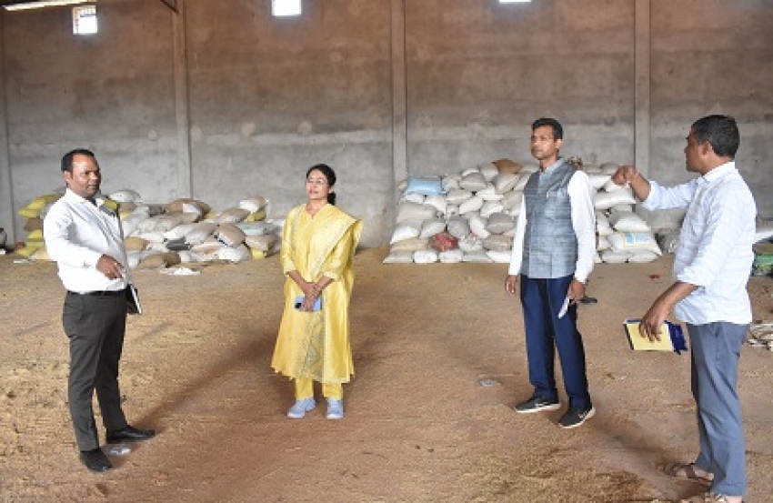 बालोद / शौर्यपथ / कलेक्टर श्रीमती दिव्या उमेश मिश्रा के निर्देशानुसार बालोद जिले में समर्थन मूल्य पर धान खरीदी कार्य के अंतर्गत धान की अवैध खरीदी बिक्री पर रोकथाम सुनिश्चित करने हेतु प्रशासन के आला अधिकारियों एवं जाँच दल में शामिल अधिकारी-कर्मचारियों द्वारा कोचियों तथा धान के थोक एवं फुटकर व्यापारियों के गोदामों की निरंतर जाँच की जा रही है। कलेक्टर श्रीमती दिव्या उमेश मिश्रा ने आज जिला पंचायत के मुख्य कार्यपालन अधिकारी श्री सुनील चंद्रवंशी एवं अन्य वरिष्ठ अधिकारियों के साथ ग्राम भीमकन्हार में दो थोक व्यापारियों के गोदामों में पहुँचकर वहाँ रखे गए धान का निरीक्षण किया। इस दौरान कलेक्टर एवं अधिकारियों ने ग्राम भीमकन्हार के थोक व्यापारी श्री गौतमचंद जैन एवं श्री सुभाष जैन के गोदामों में पहुँचकर जिला खाद्य अधिकारी, मण्डी सचिव एवं अन्य अधिकारी-कर्मचारियों के साथ गोदाम में रखे गए धान का निरीक्षण किया गया। इस दौरान श्री गौतमचंद जैन के भीमकन्हार स्थित गोदाम के निरीक्षण के दौरान आॅनलाईन पोर्टल स्टाॅक एवं रजिस्टर का मिलान करने पर 2360 क्विंटल धान स्टाॅक में होना पाया गया। लेकिन मौके पर गोदाम में उपलब्ध धान का स्टाॅक एवं आॅनलाईन पोर्टल से मिलान करने पर 1146 कट्टा (458.40 क्विंटल) धान पाया गया। जो कि आॅनलाईन पोर्टल स्टाॅक एवं पंजी में दर्ज धान की मात्रा से 4754 कट्टा (1901.60 क्विंटल) कम है।
