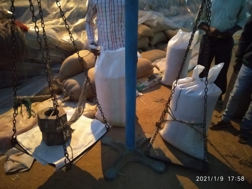 संदेह के आधार पर सिलाई किये हुए बोरे एवम स्टैकिंग में रखे बोरे का तौल कराया गया जिसमें वजन 37, 38, 39 किलोग्राम पाया गया। उपार्जन केंद्र में 05 स्टैग बिना डनेज के जमीन पर ही लगाया गया है। फड़ में केवल 03 काटा बार है तथा इलेक्ट्रॉनिक वजन मशीन निरंक मिला। कई स्टैग गणना योग्य नही है। स्टैकिंग सही तरीके से नही होने के कारण कई बोरे गिर गए थे। इस उपार्जन केंद्र में 84 लघु/सीमांत किसान अभी भी शेष है जिनका आज दिनांक तक टोकन नही काटा गया है जबकि रिपोर्ट के अनुसार पंक्तियां उपार्जन केंद्र में 85% किसानों की धान खरीदी किया जा चुका है, केवल 15% पंजीकृत कृषक धान विक्रय हेतु शेष है जो की केवल दीर्घ कृषक होने चाहिए थे।