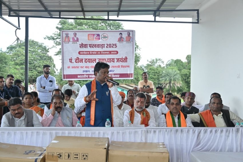 जगदलपुर, शौर्यपथ। पंडित दीनदयाल उपाध्याय की जयंती के अवसर पर सेवा पखवाड़े कार्यक्रम के अंतर्गत लोहंडीगुड़ा ब्लॉक के ग्राम मांदर में बाढ़ प्रभावित परिवारों को राहत सामग्री वितरित की गई।