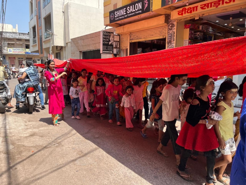 समित्ति के सुजल शर्मा ने बताया कि मंदिर में रोजाना दोपहर 12 बजे कन्या पूजन किया जा रहा है। जिसमें प्रतिदिन अलग अलग सरकारी स्कूलों एवं अलग अलग वार्ड के से पूरे बाजे गाजे के साथ कन्या माताओं को माता की 108 फिट लंबी चुनरी के नीचे कन्या माताओं को माता की चुनरी में सजा के दुर्गा मंदिर लाया जाता है। जहा इन बेटियों का पूजन कर भोज कराया जा रहा है उसके बाद उन्हें पायल जैन महिला कैट अध्यक्ष के द्वारा सभी कन्या माताओं को भेंट में शिक्षण सामग्री एवं घर उपयोग की सामग्री जिसमें बैग वाटर बॉटल टिफिन सेंट ड्राइंग बुक जैसे पेंसिल रबर शॉपनर कॉपी पेन बॉक्स और साथ में 9 प्रकार के फल आदि दिए जा रहे हैं ताकि वे शिक्षा की ओर बढ़ें और स्वस्थ रहे। समिति के लोगों का मानना है कि बेटियां अगर शिक्षित होंगी तो समाज भी शिक्षित होगा।