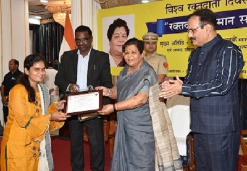 राज्यपाल एवं इंडियन रेडक्रॉस सोसायटी छत्तीसगढ़ शाखा की अध्यक्ष सुश्री अनुसुईया उइके ने विश्व रक्तदाता दिवस के अवसर पर आज राजभवन में प्रदेश के सभी जिलों से आए स्वैच्छिक रक्तदाताओं एवं रेडक्रास सोसायटी को सहयोग देने वाली 60 स्वयंसेवी संस्थाओं एवं उच्च शैक्षणिक संस्थाओं को सम्मानित किया। यह कार्यक्रम इंडियन रेडक्रॉस सोसायटी छत्तीसगढ़ शाखा द्वारा आयोजित किया गया। इस अवसर पर संस्था की वेबसाईट का शुभारंभ एवं त्रैमासिक पत्रिका के प्रथम अंक का विमोचन भी किया गया। इस अवसर पर संस्था द्वारा बीजापुर जिले के लिए एक एम्बुलेंस भी प्रदान किया गया।