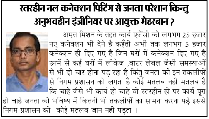 यदि मामले को निगम आयुक्त के संज्ञान में भी लाया जाता है तो एक सख्त अधिकारी की तरह अधिनस्त कर्मचारियों को तुरंत कॉल कर जांच की बात कहते है किंतु यह बात भी दिखावटी ही प्रतीति होती है । ऐसे ही एक मामले में शौर्यपथ समाचार ने कुछ जगहों पर स्तरहीन कार्य की मय प्रमाण सहित बात की तो आयुक्त द्वारा तुरंत संज्ञान लेकर जांच कराने का आदेश तो दे दिया किन्तु आदेश का पालन अधिनस्त कर्मचारी वर्तमान समय तक नही कर पाए । क्या इसका यह अर्थ नही निकलता कि या तो निगम आयुक्त के अधिनस्त निगम आयुक्त के आदेश को हल्के में लेते है या फिर अधिनस्त कर्मचारी और निगम आयुक्त शिकायत कर्ता के साथ सिर्फ दिखावे का कार्य कर रहे है ।