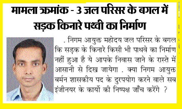 ऐसे ही कुछ मामलो को लेकर शौर्यपथ समाचार पत्र प्रतिदिन निगम के एक घोटालो को मय दस्तावेज आम जनता के सामने लाता रहेगा निगम प्रशासन भले ही अपने जिम्मेदार अधिकारी को बचाते रहे किन्तु समाचार पत्र प्रतिदिन एक घोटाले सामने लाता रहेगा . दुर्ग निगम में सब इंजिनियर भीम राव द्वारा एक ऐसे जगह पाथवे का निर्माण किया गया जो सिर्फ दस्तावेजो में ही है और ऐसे स्थान का नाम दस्तावेज में अंकित है जिस पर किसी को शक भी होगा तो जा कर आसानी से देख सके ऐसा आम जनता के लिए संभव नहीं हो .