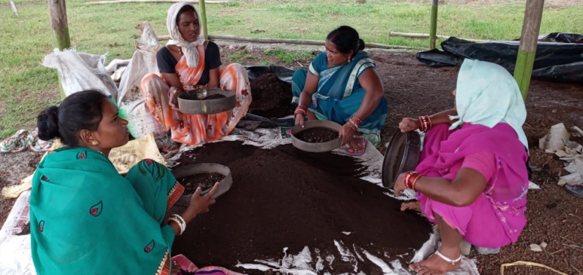 दुर्ग / शौर्यपथ / ग्रामीण महिलाओं को आर्थिक गतिविधियों से जोडऩे के लिए विशेष प्रयास लगातार जारी हैं।बिहान योजना के तहत महिलाओं को रोजगार मूलक कार्य के रूप में वर्मी कम्पोस्ट खाद बनाने का प्रशिक्षण दिया गया इस तरह इनको गांव में ही काम उपलब्ध कराया जा रहा है।राज्य सरकार की योजना नरवा, गरूवा, घुरूवा और बाड़ी योजना से सुराजी गाँव की परिकल्पना साकार होती नजर आ रही है। स्व सहायता समूह की महिलाएं गौठानों में वर्मी कम्पोस्ट खाद और नाडेप टैंकों में पारंपरिक खाद का निर्माण कर रही हैं।
