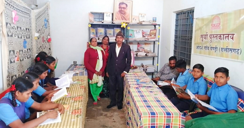 0 सूर्या फाउंडेशन सतगुरु कबीर कुटी आश्रम पेंड्री और माध्यमिक विद्यालय द्वारा 250 पुस्तकों के साथ पुस्तकालय का संचालन प्रारंभ किया गया