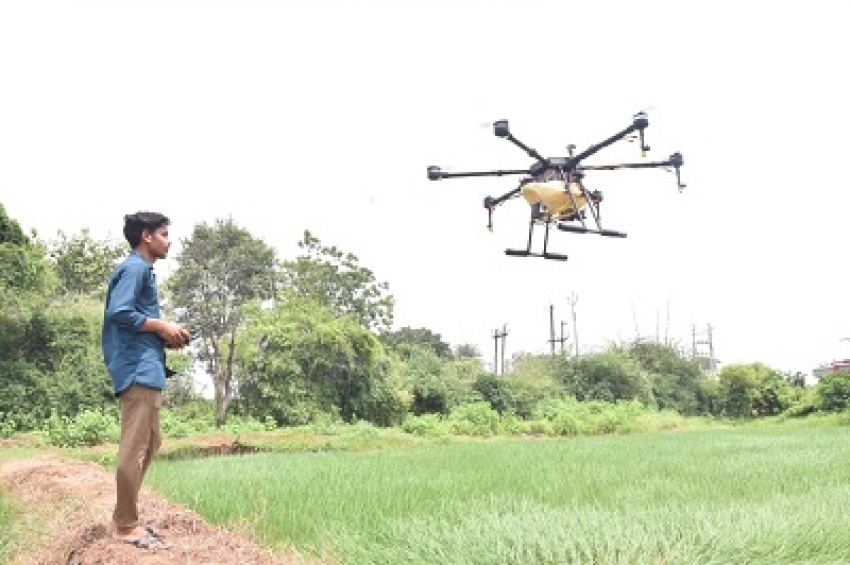 - ड्रोन के माध्यम से नैनो उर्वरक के छिड़काव का किया गया प्रदर्शन