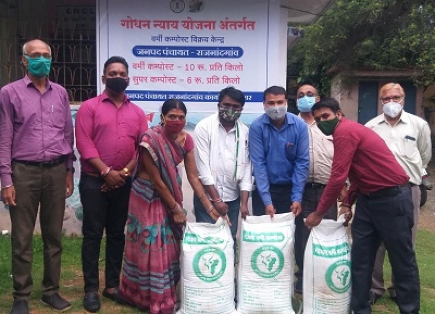 राजनांदगांव / शौर्यपथ / गोधन न्याय योजना अंतर्गत जनपद पंचायत राजनांदगांव में वर्मी कपोस्ट व सुपर कंपोस्ट के विक्रय हेतु विक्रय केन्द्र प्रारंभ किया गया। जनपद पंचायत के उपाध्यक्ष रोहित चंद्राकर, जनपद सदस्य टिंकू साहू, मोहनीश धनकर द्वारा विक्रय केन्द्र में वर्मी कम्पोस्ट का विक्रय कर केन्द्र का शुभारंभ किया गया। उल्लेखनीय है कि वर्मी कम्पोस्ट विक्रय केन्द्र में जनसामान्य को वाजिब कीमतों में वर्मी कम्पोस्ट मिलेगा। वर्मी कम्पोस्ट 10 रूपए प्रति किलो एवं सुपर कम्पोस्ट 6 रूपए प्रति किलो की दर पर उपलब्ध है। साथ ही 30 किलो, 10 किलो, 5 किलो के पैकिंग की सुविधा है। इस अवसर पर जनपद सीईओ एसके ओझा एवं जनपद पंचायत के अधिकारी व कर्मचारी उपस्थित थे।