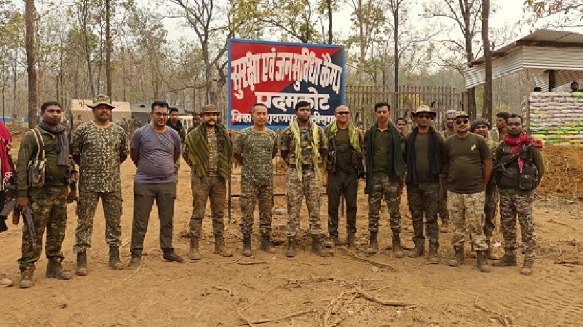 नारायणपुर / शौर्यपथ / वरिष्ठ अधिकारियों के निर्देशन में नारायणपुर पुलिस द्वारा थाना कोहकामेटा के ग्राम पदमकोट क्षेत्र में नक्सल विरोधी अभियानों एवं कुतुल-बेडमाकोटी व पदमकोट-नेलांगुर-कुआंकोडी (महाराष्ट्र) मार्ग तक सड़क निर्माण कार्य में सुरक्षा प्रदान करने एवं विकास कार्याे में तेजी लाने के उद्देश्य से दिनांक 28.03.2025 को नारायणपुर पुलिस डीआरजी, बस्तर फाईटर एवं आईटीबीपी 41वीं, 29वीं, 45वीं, 38वीं वाहिनी के द्वारा घोर नक्सल प्रभावित माड़ क्षेत्र माओवादियों के आश्रय स्थल ग्राम ‘‘पदमकोट’’ में नवीन कैम्प स्थापित किया गया है। इस महिने का 02 एवं विगत एक साल में 11वां नवीन कैम्प पदमकोट में खोला गया।