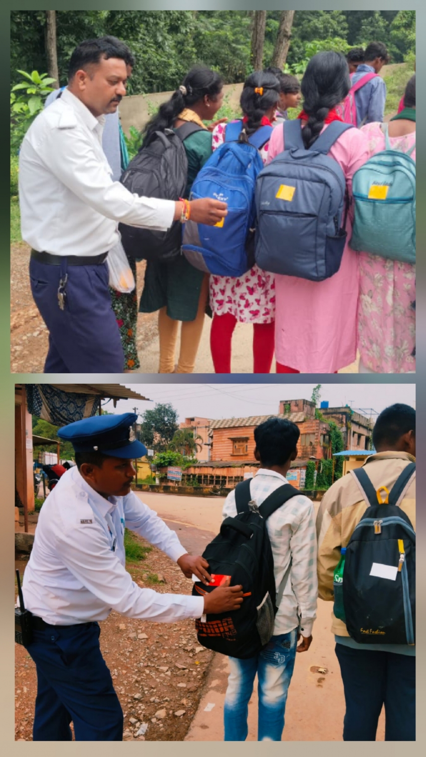 नवरात्र पर्व के दौरान दंतेश्वरी माता जी के दर्शन हेतु दंतेवाड़ा जा रहे पदयात्रियों की सुरक्षा सुनिश्चित करने के लिए उनके बैग पर सड़क सुरक्षा के मद्देनज़र रेडियम रिफ्लेक्टर स्टीकर लगाए जा रहे हैं। यह पहल 22 सितंबर 2025 से निरंतर जारी है।