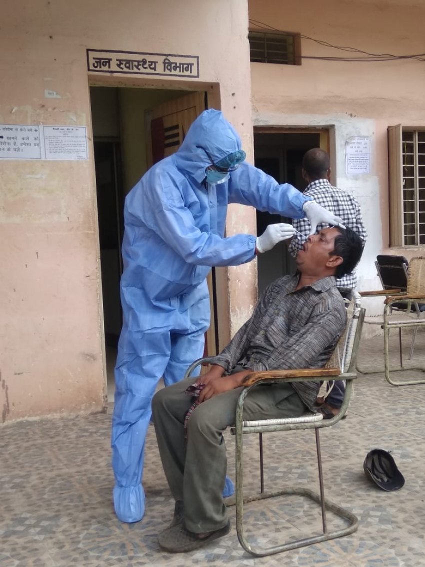 कोरोना वायरस कम्युनिटी में न फैले इसके लिए जिला स्वास्थ्य विभाग की टीम आज सुबह 11 बजे से निगम के जोन 03 व जोन 04 कार्यालय में कोरोना वायरस के जांच संबंधी सभी उपकरण के साथ पहुंचे। डॉ. हरिराम यदु, आयुष चिकित्सा अधिकारी ने बताया कि डॉक्टरों की टीम 20 कर्मचारियों से आरटीपीसीआर जांच के लिए नाक और गले का स्वेब सेम्पल कलेक्शन किए। आज भिलाई निगम क्षेत्र में सफाई व्यवस्था में कार्यरत जिनकी उम्र लगभग 50 वर्ष के आस पास है उन लोगों का चयन कर एतिहातन के तौर पर सेम्पल लेकर जांच हेतु एम्स रायपुर भेजा गया। इस दौरान डॉक्टरों की टीम ने सभी कर्मचारियों को कार्य के दौरान सोशल डिस्टेंस का पालन करने, मास्क का उपयोग करने व बार बार हाथों की सफाई करते रहने के निर्देश देते हुए तबीयत खराब होने पर तत्काल चिकित्सकीय परामर्श लेने की सलाह दिए। जांच शिविर में जिला स्वास्थ्य विभाग टीम में लैब टेक्निशियन अशोक वर्मा, वार्ड ब्वॉय देवेन्द्र पटेल, जोन 04 के स्वास्थ्य अधिकारी महेश पाण्डेय, जोन 03 के स्वच्छता अधिकारी आर.पी. तिवारी, स्वच्छता निरीक्षक के.के. सिंह आदि उपस्थित थे।